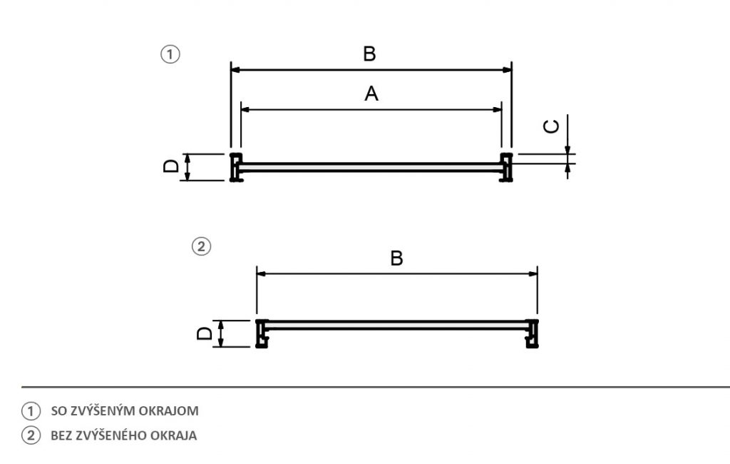 Model Nosnosť (rázvor 1 000 mm) Dĺžka Vnútorná šírka (A) Vonkajšia šírka (B) Výška zvýšeného okraju rampy (C) Výška profilu rampy (D) Hmotnosť